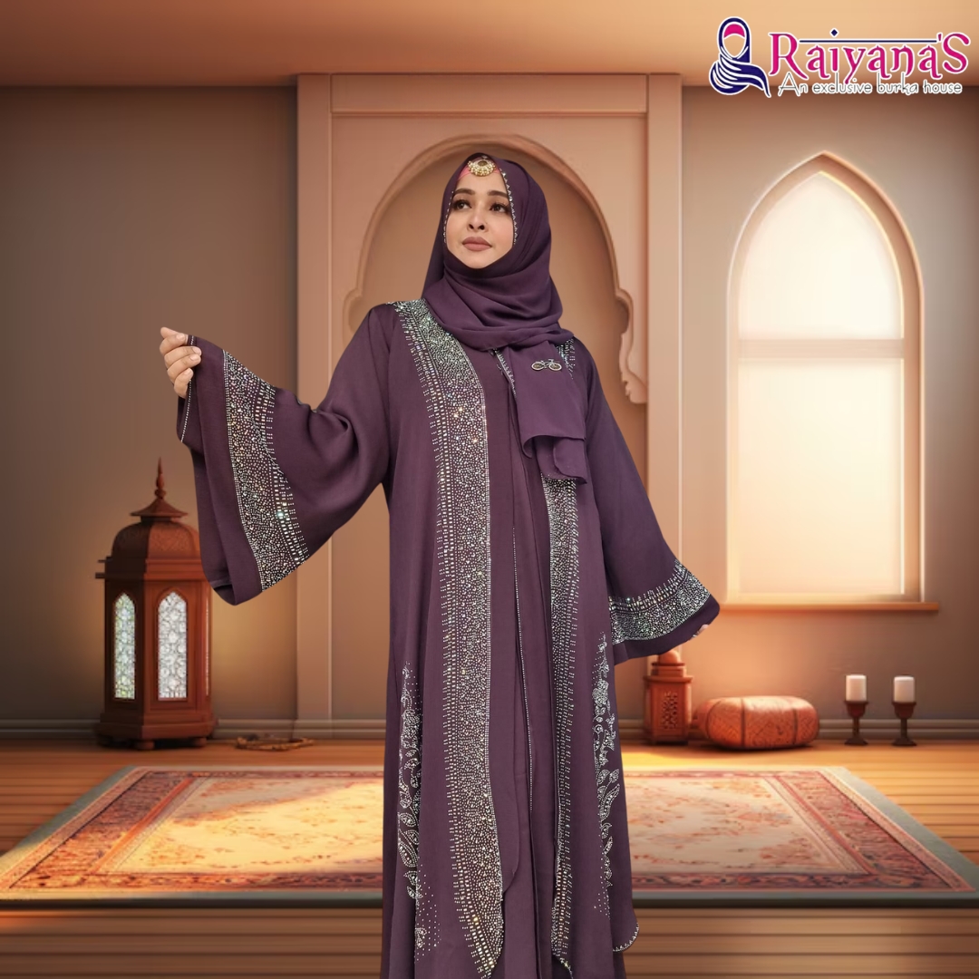 The Elegant Frame Borka is a masterpiece of refined craftsmanship, designed to highlight graceful femininity. It features intricate embroidery framing the neckline, sleeves, and hemline, with subtle shimmering accents for a touch of glamour. Crafted from premium fabric, this borka offers a perfect blend of comfort and sophistication, making it ideal for formal occasions, evening gatherings, or religious events. Its timeless design ensures you stand out with understated elegance.