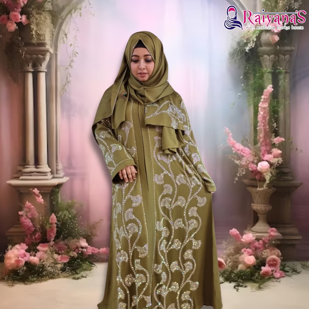 Adorned with glittery stonework and delicate patterns, this borka is the epitome of party wear. The flowing silhouette and stylish design offer comfort and charm for festive nights.