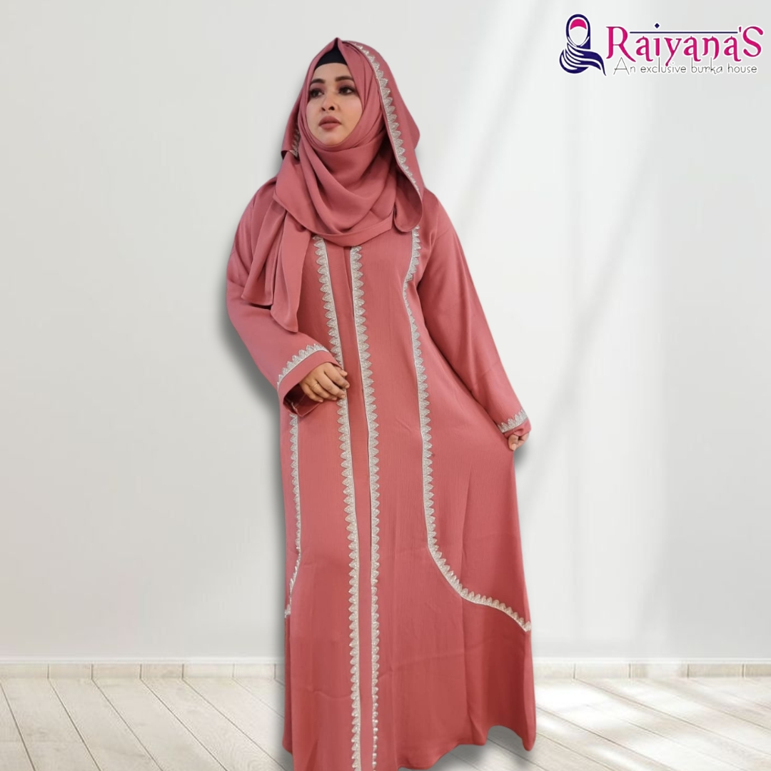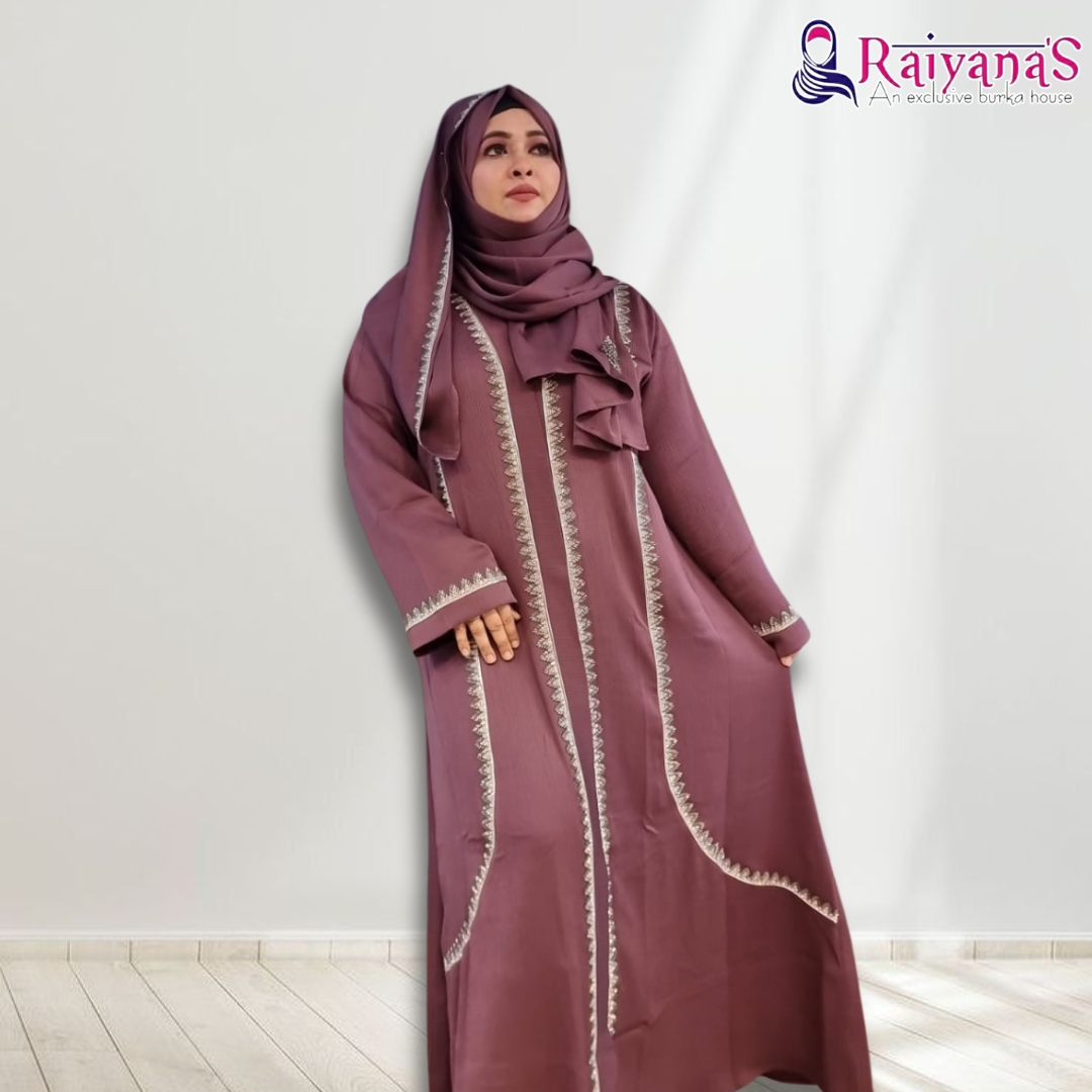 A glamorous borka designed with delicate stone embellishments and fine embroidery. The flowing silhouette ensures comfort, while the elegant details make it ideal for upscale events.